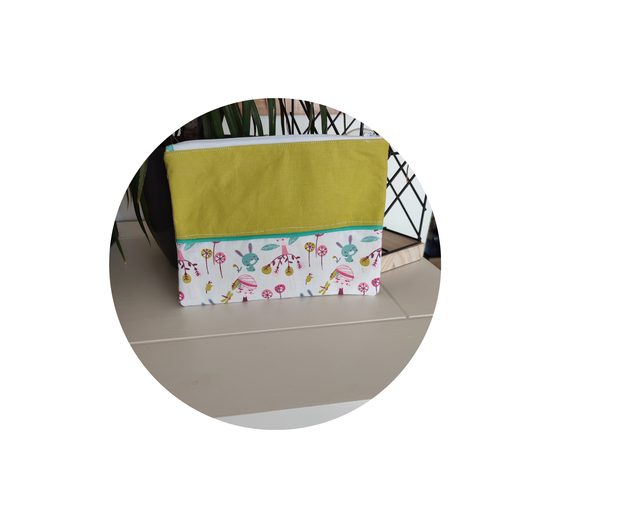 Cette trousse vous servira pour glisser votre maquillage mais aussi les accessoires en tout genre de vos enfants. Elle est entièrement thermocollée et donc d'une bonne tenue. Joliment finie par un passepoil.